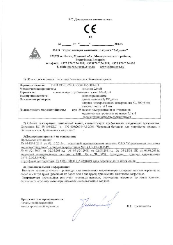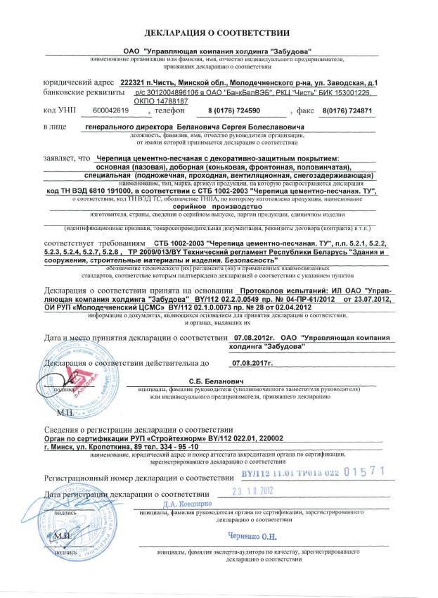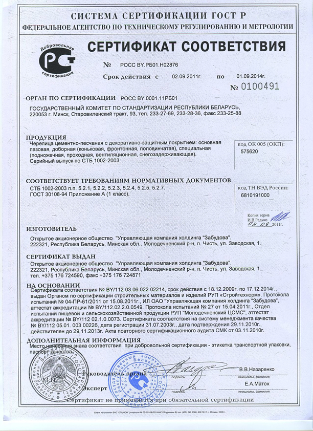 Цементно-песчаная черепица ЗабудоваСО СКЛАДА В МИНСКЕ